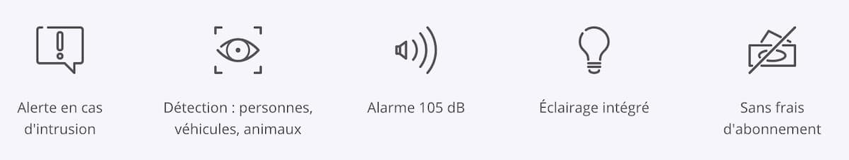 Elle apporte un design élégant doté d’un éclairage, une sirène puissante et une application toujours aussi simple et facile à utiliser. Elle a également une vraie efficacité pour différencier les personnes, véhicules et animaux afin d’éviter les alertes intempestives. Enfin, elle offre le stockage en local avec sa carte microSD.
