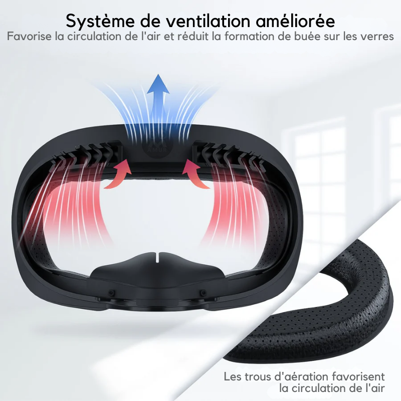 Le pack comprend plusieurs composants : plaquette nasale anti-lumière, protecteur de lentilles et rembourrages ajustables. Les différents trous d’aération et options de rembourrage permettent de personnaliser l’interface selon vos besoins et améliorent la fonctionnalité globale.