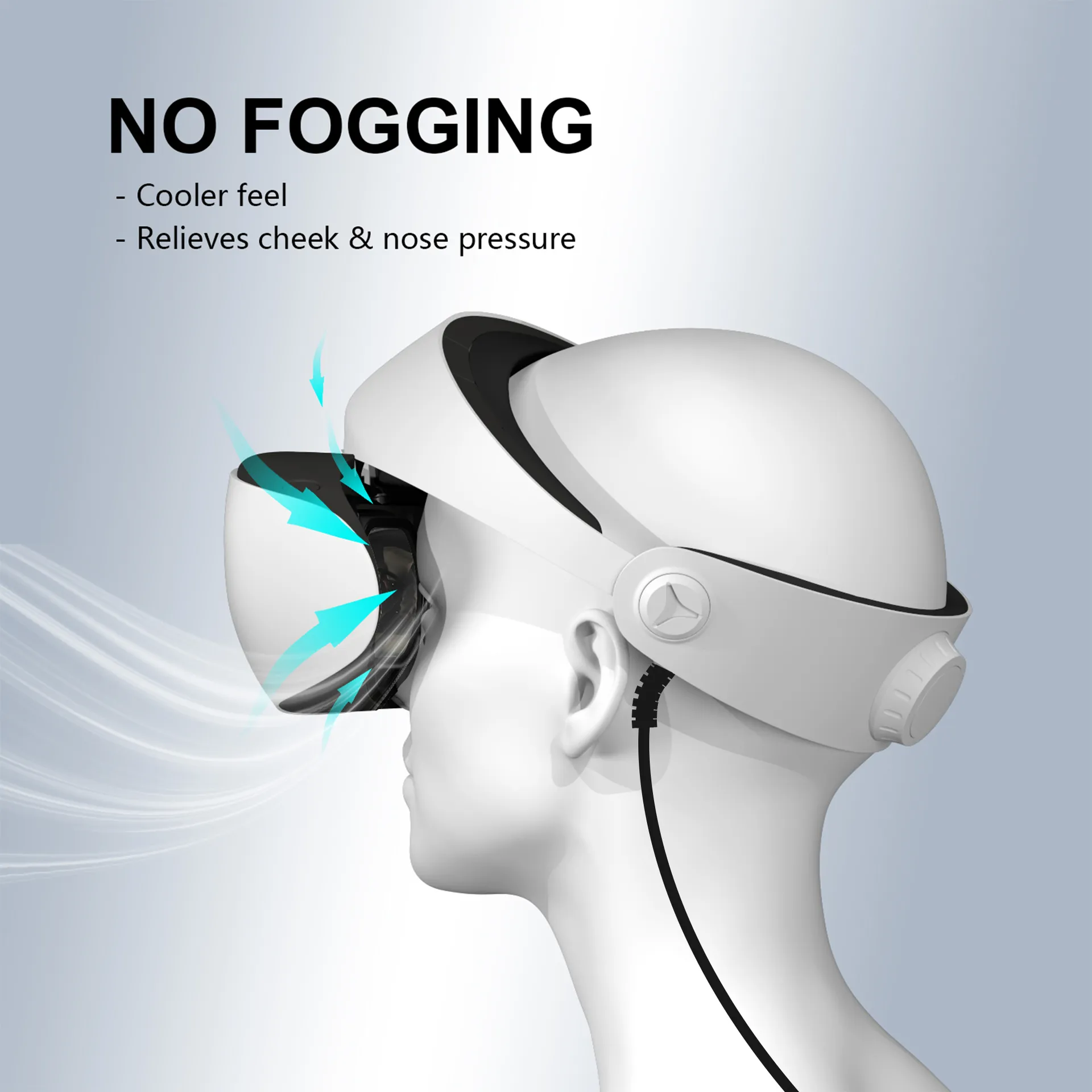 Grâce au design ouvert du FIVR2, l’air circule plus librement autour du visage. Cela peut réduire la condensation et garder une sensation plus fraîche pendant l’utilisation.