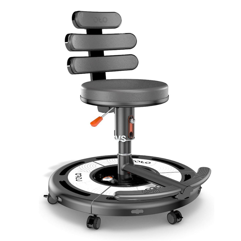 Visuellement, le Roto VR Explorer ressemble à une chaise de bureau futuriste montée sur roulettes, avec une base massive évoquant une boussole. Elle supporte jusqu’à 130 kg et intègre un repose-pieds fixe servant de repère. En revanche, il faut prévoir de l’espace. Un cercle libre d’environ deux mètres de diamètre est recommandé pour pouvoir bouger les bras sans contrainte. La chaise nécessite également une alimentation électrique, ce qui limite sa mobilité par rapport à un fauteuil classique.