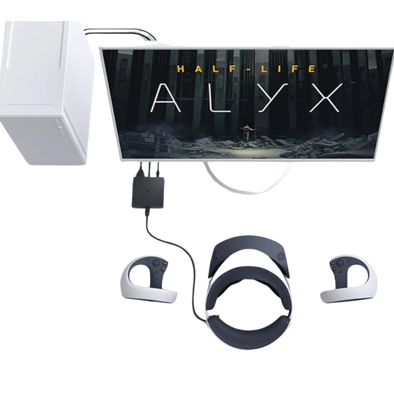 L’objectif principal du ’Sony adaptateur PC PS VR 2 est simple. Il permet de connecter le PSVR2 à un PC afin de profiter de la bibliothèque de jeux SteamVR.